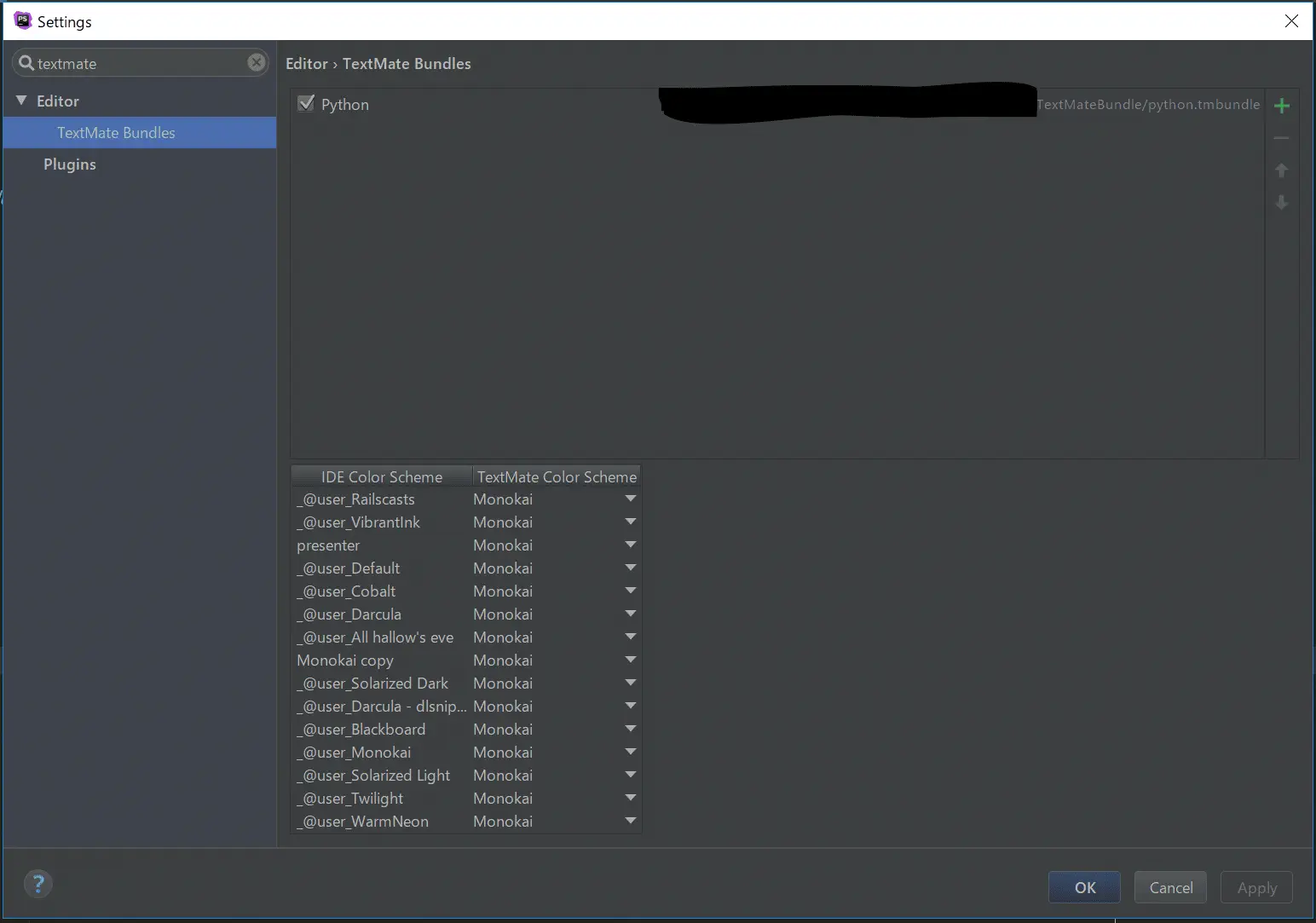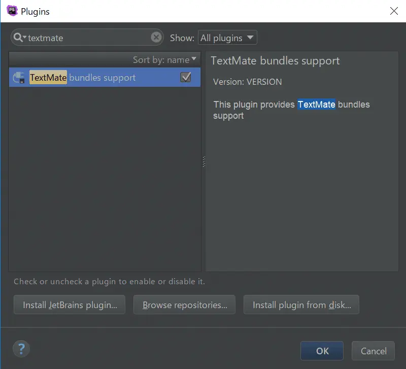 そんな機能を使うには、まず TextMate Bundles Support を有効化する必要があります。
