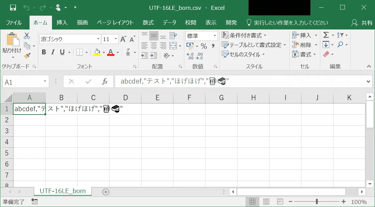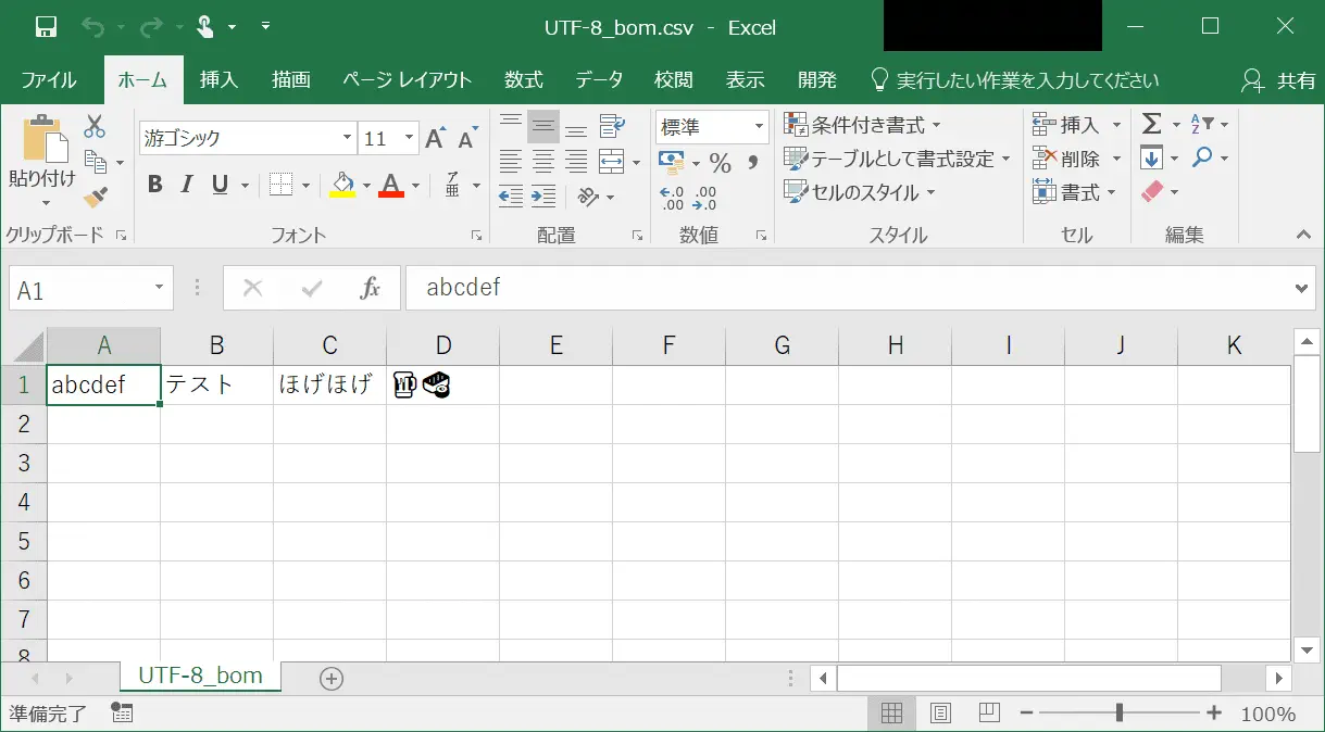 - UTF では BOM ありでないと文字化けしてしまいました。