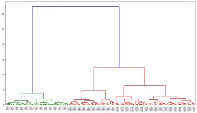そうして出来上がったクラスタリング結果ですが、このままでは木構造のようになっており、データとして扱うにはどれがどういうクラスタに属しているのかを明確に決定しにくいです。実際にあるタスクで利用したときには、最大距離の7割を基準にして、クラスタを分割していました。状況によってはパラメータの調整する必要がありそうな予感がしています。