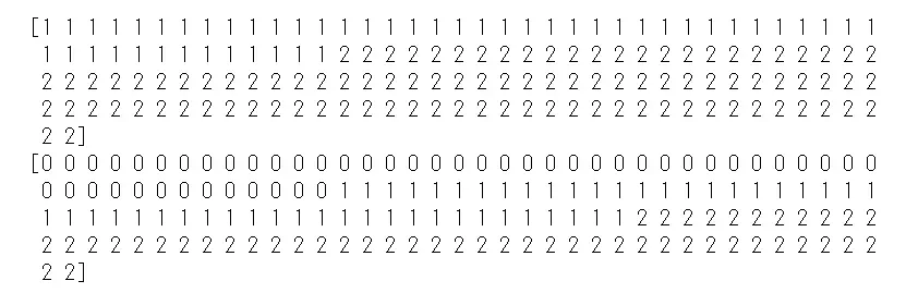 - 各要素から一番近いクラスタの位置を探し、それを各要素のクラスタとして設定する