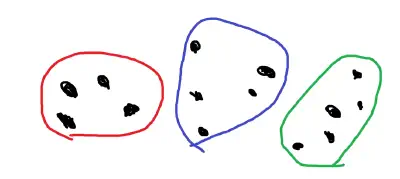 - 最終的に、各要素から一番近いクラスタの位置が、その要素のクラスタとして決定される
