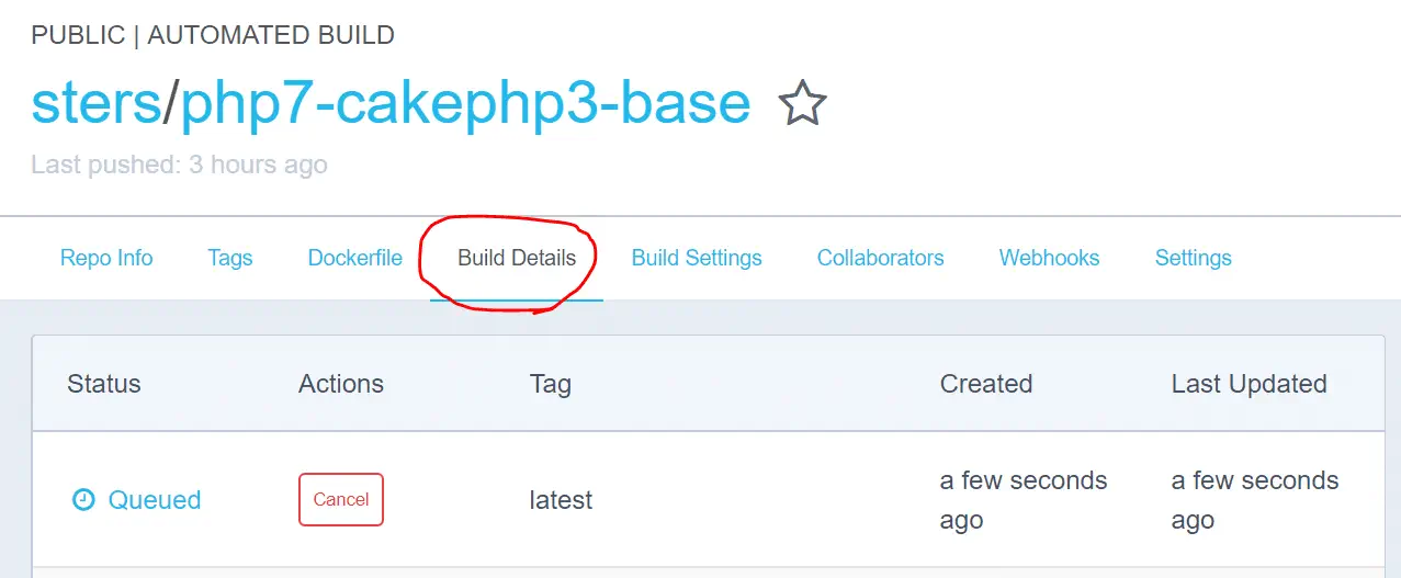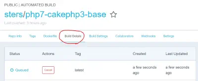 Docker Hub 側で自動ビルドが出来ます(便利!)URL が提供されるので、正しいトークンを送るとビルドキューへ追加され、自動でビルド、イメージの提供がされ始めます。