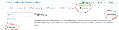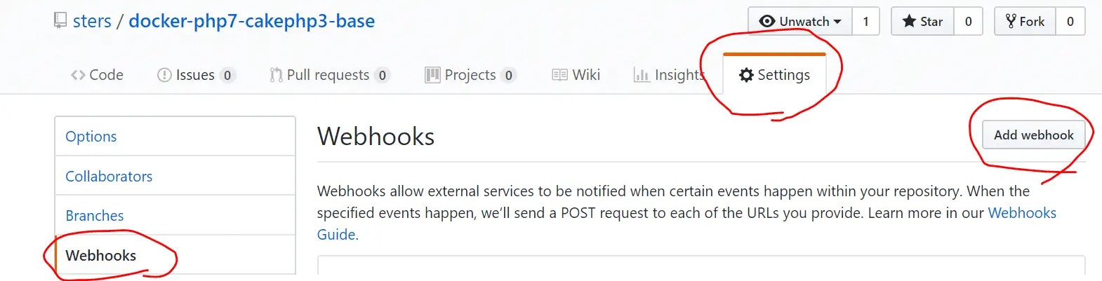 Docker Hub で取得できたトリガーの URL を GitHub の Webhook に設定します。