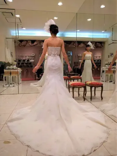 結婚式の準備を進める、ウェディングドレス試着した。着たら気持ちアガってきたそうで。