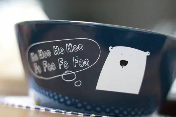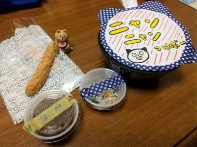 今年のバレンタインデーはヤンヤンつけボーのパロ。おもしろコンテンツで!とオーダーしたらこれだった。入っていた器はしろくまプラ皿、かわいい。