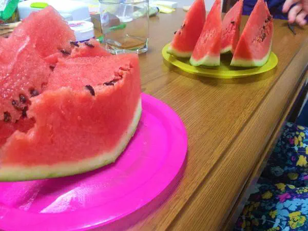 ちょっと早いがスイカが届いてスイカパーティー。知人も呼んで人生ゲームむっちゃやった。