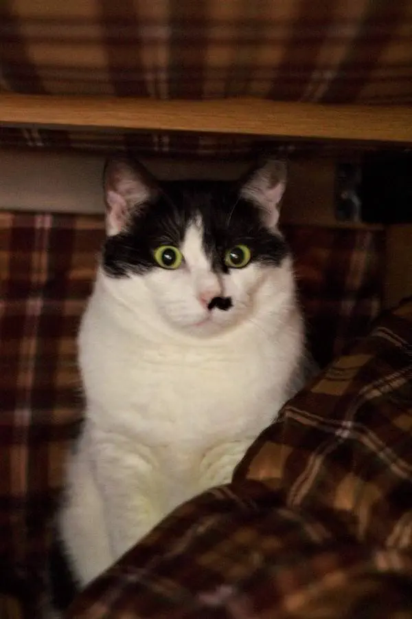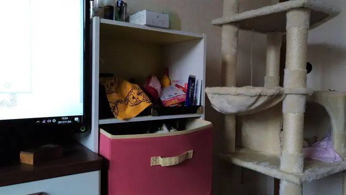 お猫さまがごみばこ家にやってきた。元々は野良猫で、保護した人から譲り受けたってワケ。来てから数日は「飯?いらんわー」って続いたが、いつの間にかめっちゃ食べるようになった。2週間くらいはケージにこもってたが、3週目にして秘密基地を見つけてしまったらしい。 そういえばこの頃はめっちゃ威嚇された。近づくとふしゃーーーー!って。