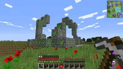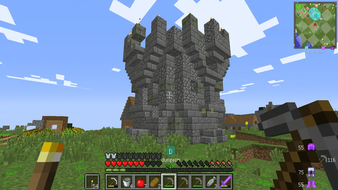 とりあえず丸石で囲みました。奇遇にも近くに要塞っぽいものが見えます。 中をちょろっとだけ見ていきます。