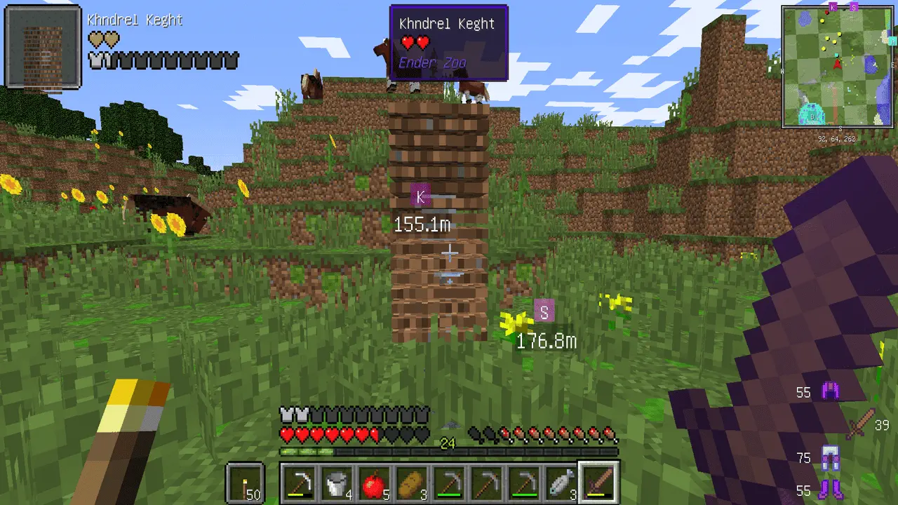 EnderZoo を入れていると、土をシャベル以外で壊したときにたまにびよ~~~んと飛んでくる mob が出現します。 意外と固いので、普通に作業しているときにこまるなあって感じです。