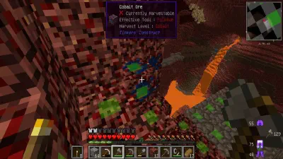 ネザーにいくと見慣れないアーダイトという鉱石がありました。要求採掘レベルはコバルトです。 同時にコバルト鉱石もありました。こちらも要求採掘レベルはコバルトです。