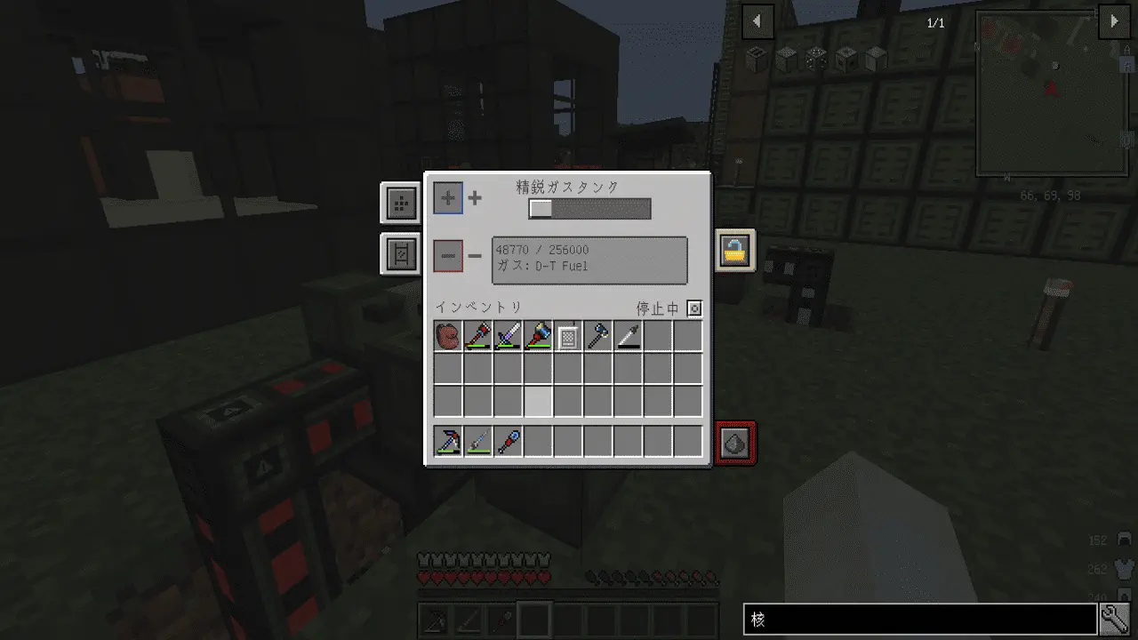 D-T 燃料を直接でもいいですし、三重水素 + 重水素 でも良いので、燃料を核反応融合炉に搬入しておきます。 これで核反応融合炉、それ自体の準備は整いました。