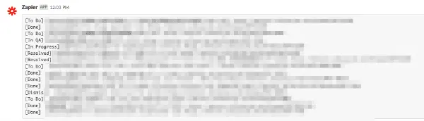 Zapier と、ここの split の都合によって、JIRA チケット名に「,」が入っているとうまく表示されないので注意が必要。 とって来た値でうまく回させてくれ!
