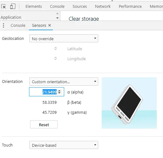 A reload is required so that the existing AbsoluteOrientationSensor and RelativeOrientationSensor objects on this page use the overridden values that have been provided. Close the inspector and reload again to return to the normal behavior.