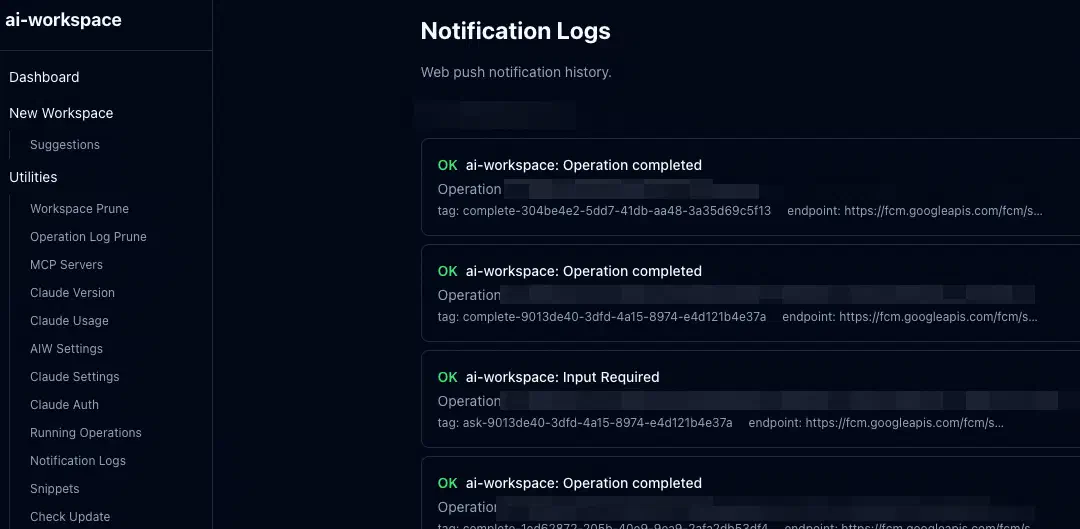 作業が終わったり、Input Requiredになるとポ〜ンと通知を出してくれるようになった。通知を見逃していてもログがあるので遡れる。