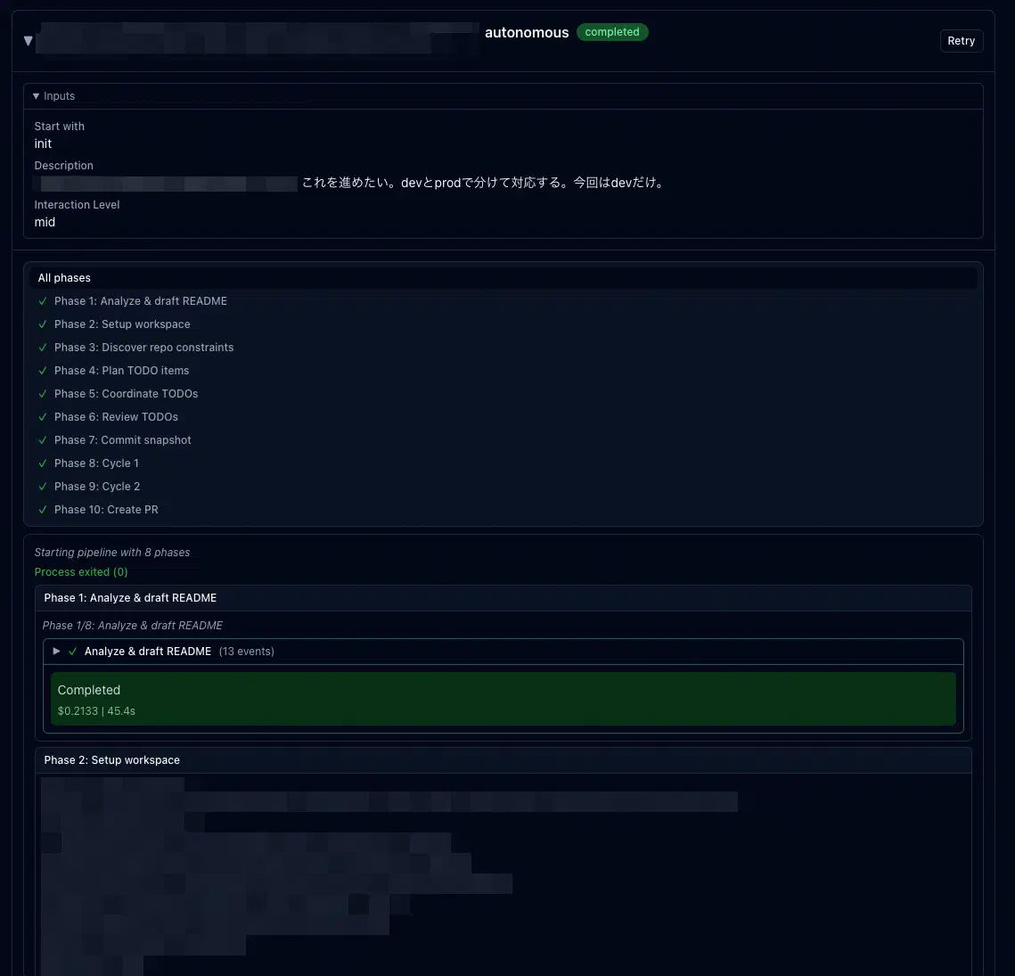 最初のオーダーと前提条件をきちんとしておけば概ね問題なく仕上がる。視覚やブラウザが必要なところは難しいけれど、browser-useなどのブラウザのread/writeを使えるようにしたらいいんじゃない?という気もしている。諸々の都合でやってないが…